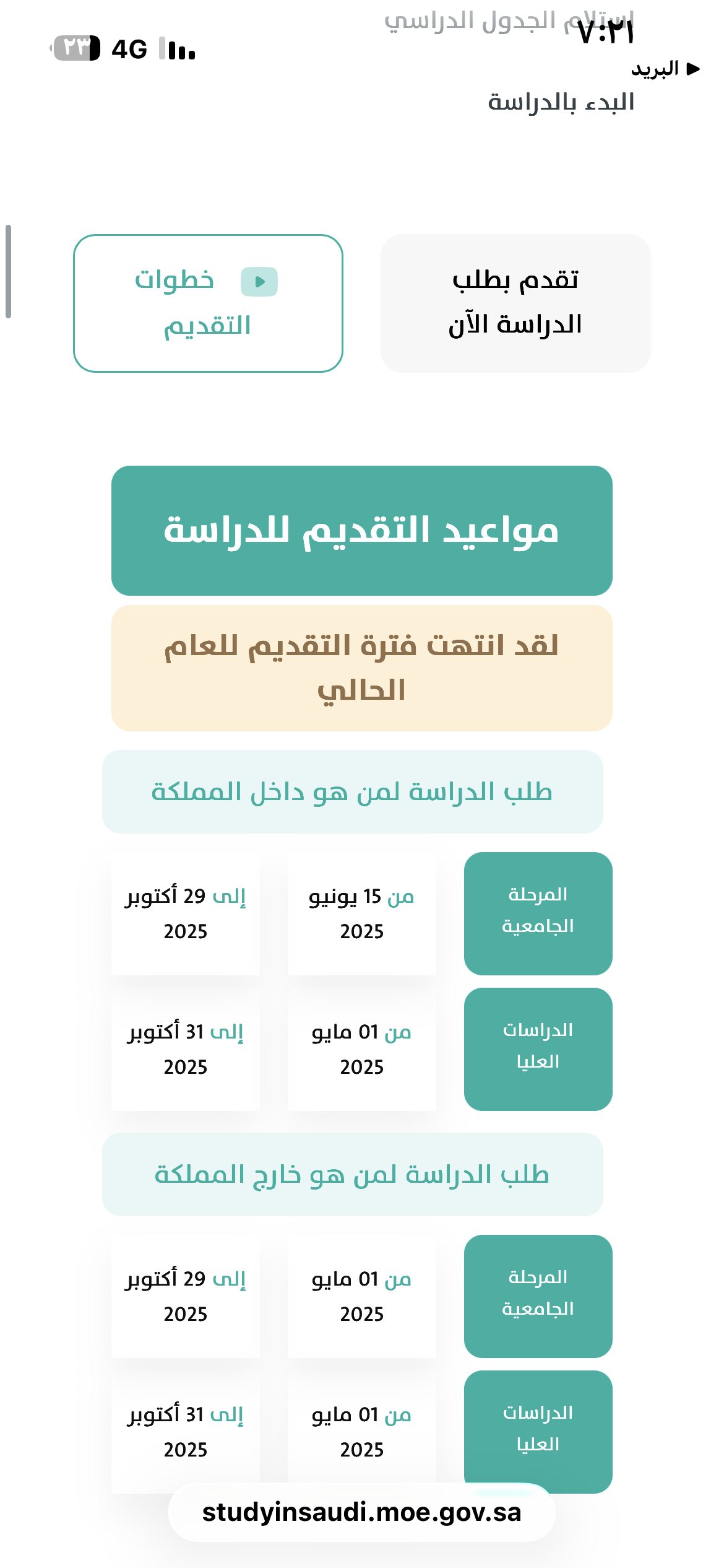 منذ 20 ساعةمرحبا أخي الكريم تم فتح التسجيل لعام 2026 للطلاب غير السعوديين عبر منصة ادرس في السعودية عبر الرابط: https://studyinsaudi.sa التسجيل ينتهي في 21 مايو 2026